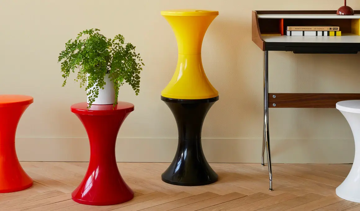 Ludique et pratique, le tabouret Tam Tam, conçu en 1968, est devenu un classique grâce à sa forme ronde et son faible encombrement. Léger, empilable et disponible dans une multitude de couleurs, il incarne l’esprit joyeux des années 60 tout en restant une option de choix pour les petits espaces modernes. Aujourd’hui encore, il s’intègre parfaitement dans toutes sortes d’intérieurs, de la chambre d’enfant au salon décontracté.