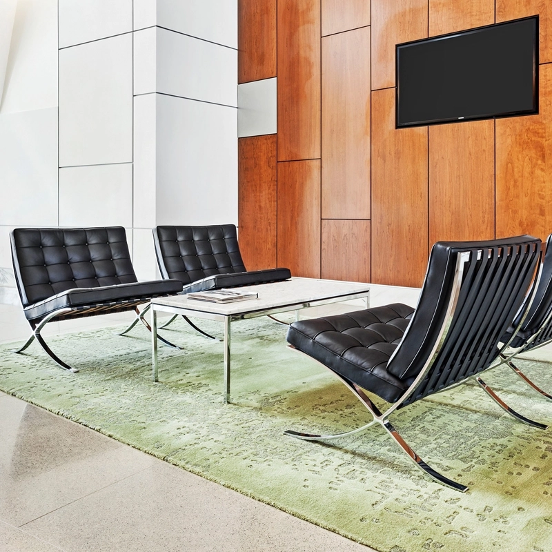 Dessiné pour l’exposition universelle de Barcelone en 1929, le fauteuil Barcelona est un chef-d’œuvre du modernisme. Composé d’un cadre en acier inoxydable et d’une assise en cuir capitonné, il incarne un luxe discret et intemporel. Sobre mais prestigieux, il est un incontournable pour ceux qui apprécient le design épuré et la qualité des matériaux.